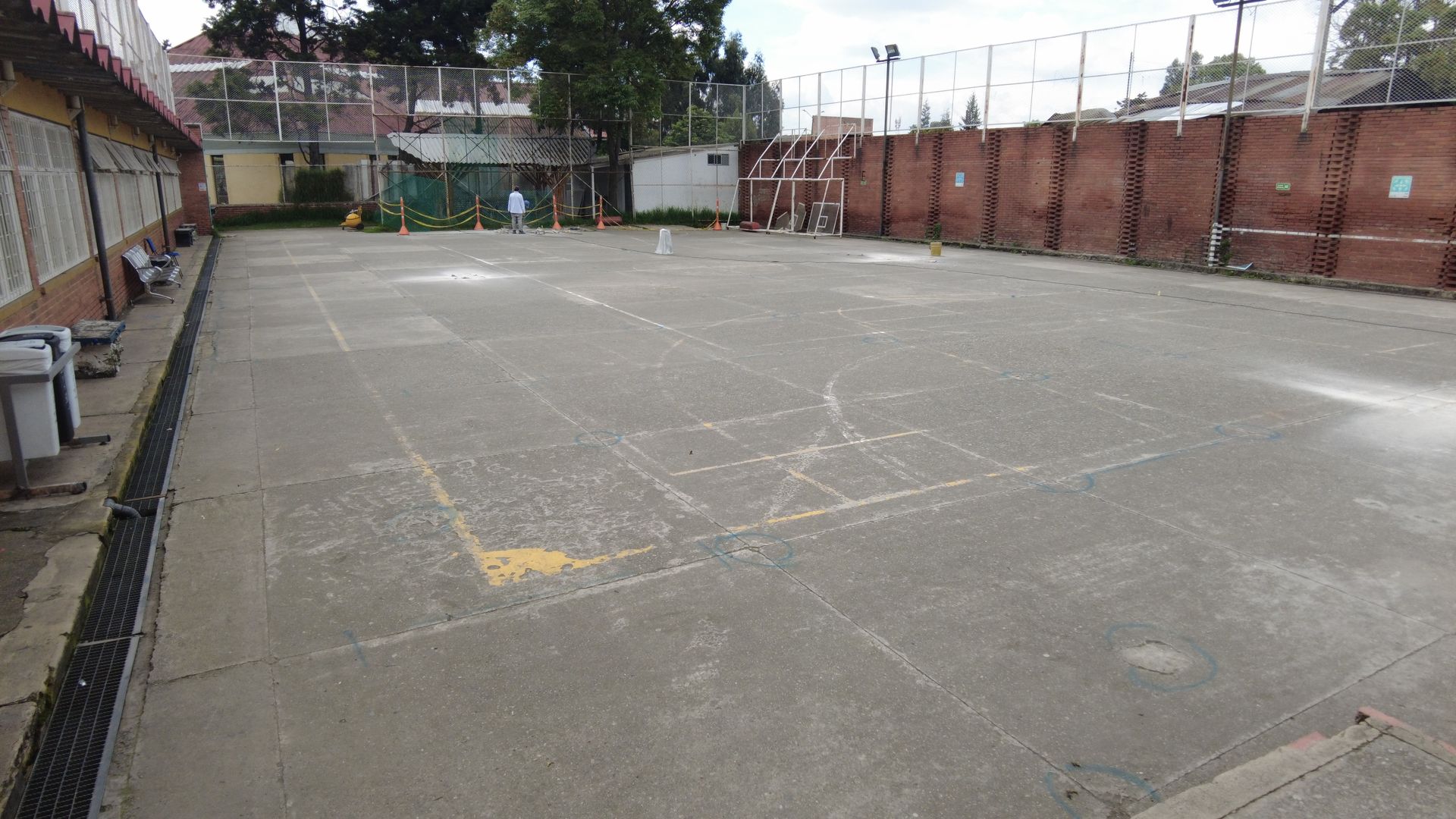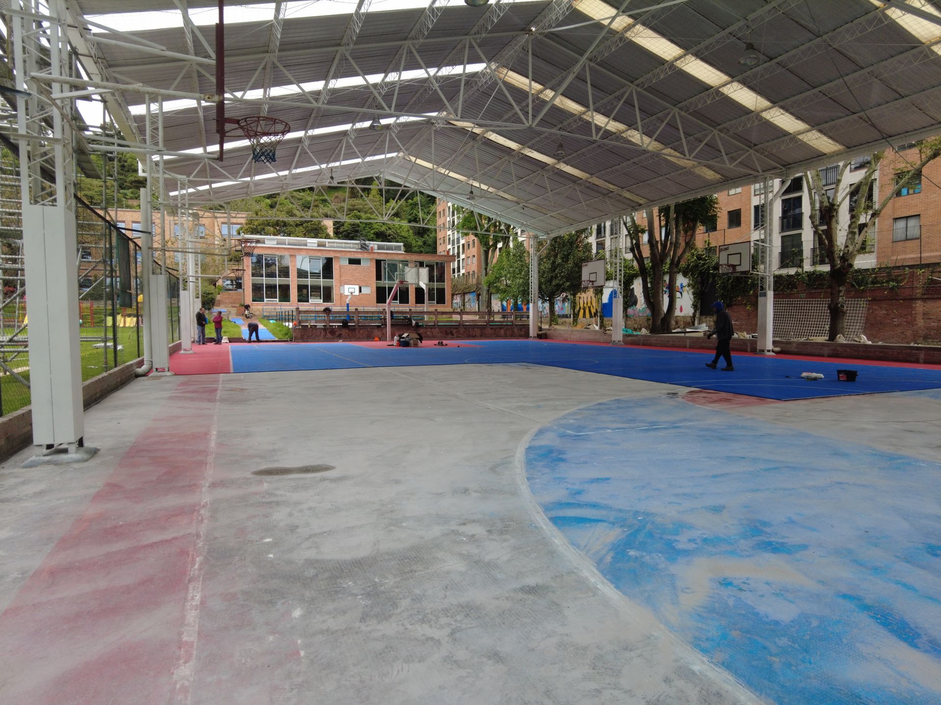 PROYECTO: Suministro e instalación de piso vinílico en rollo, demarcación cancha múltiple, suministro e instalación de fundas para sistema de voleibol, suministro e instalación de sistema de voleibol y arcos de fútbol, suministro e instalación de estructuras de baloncesto ancladas a muro con tablero en vidrio templado y sistema de elevación eléctrico