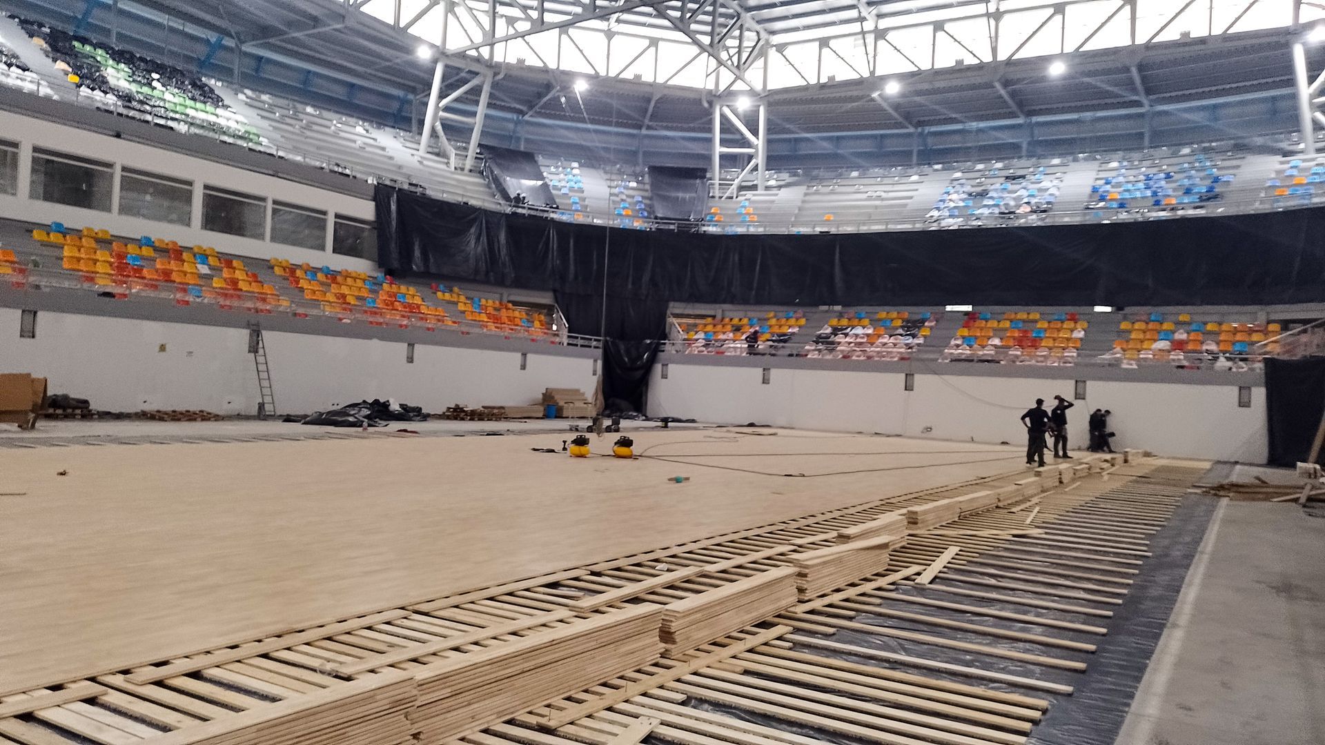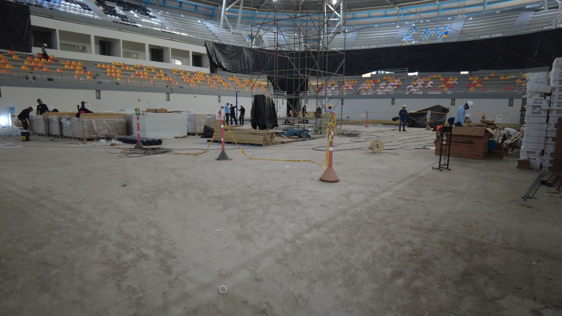 PROYECTO: Piso en rollo certificado FIVB, equipamiento para voleibol y tableros electrónicos.